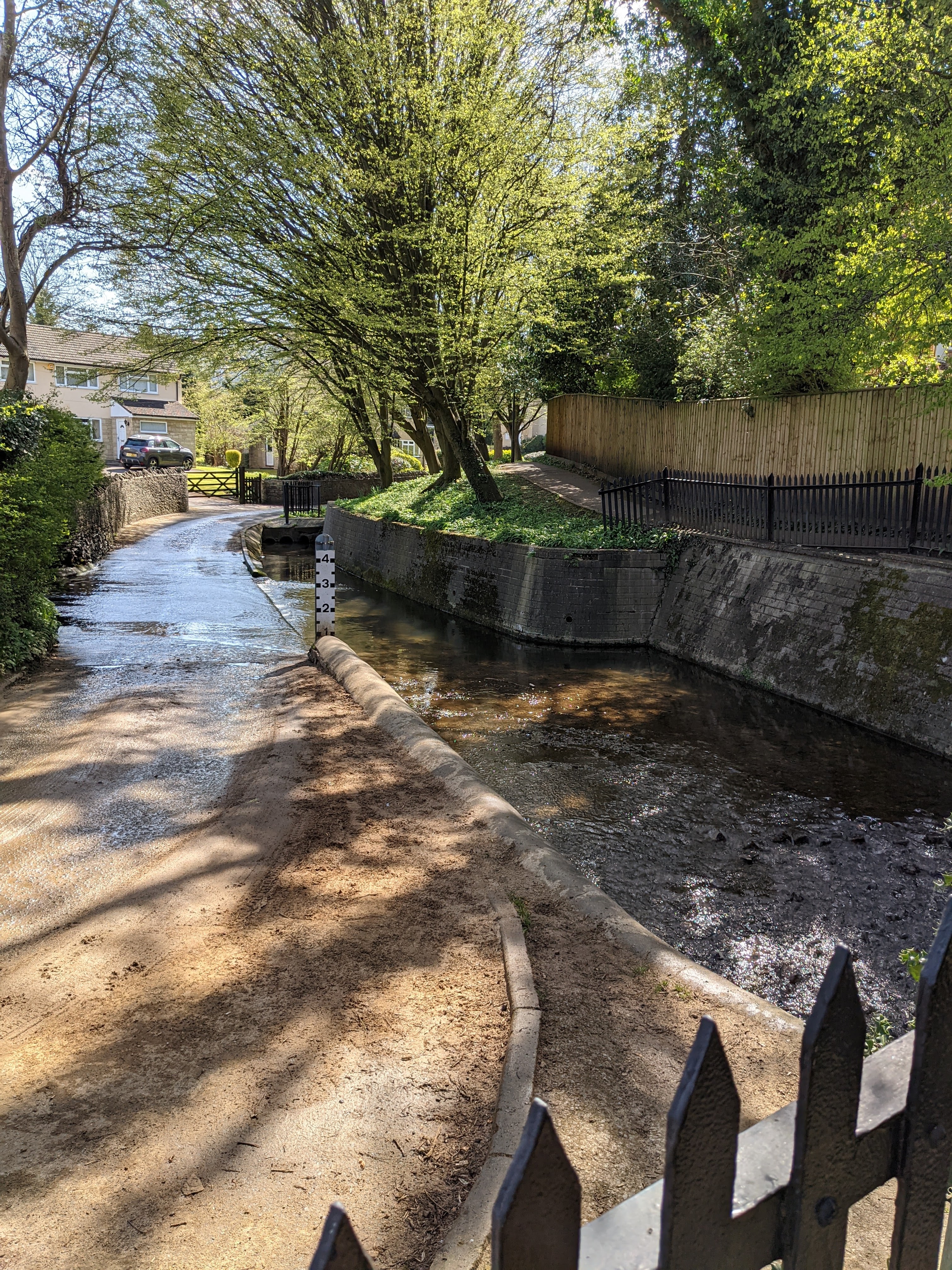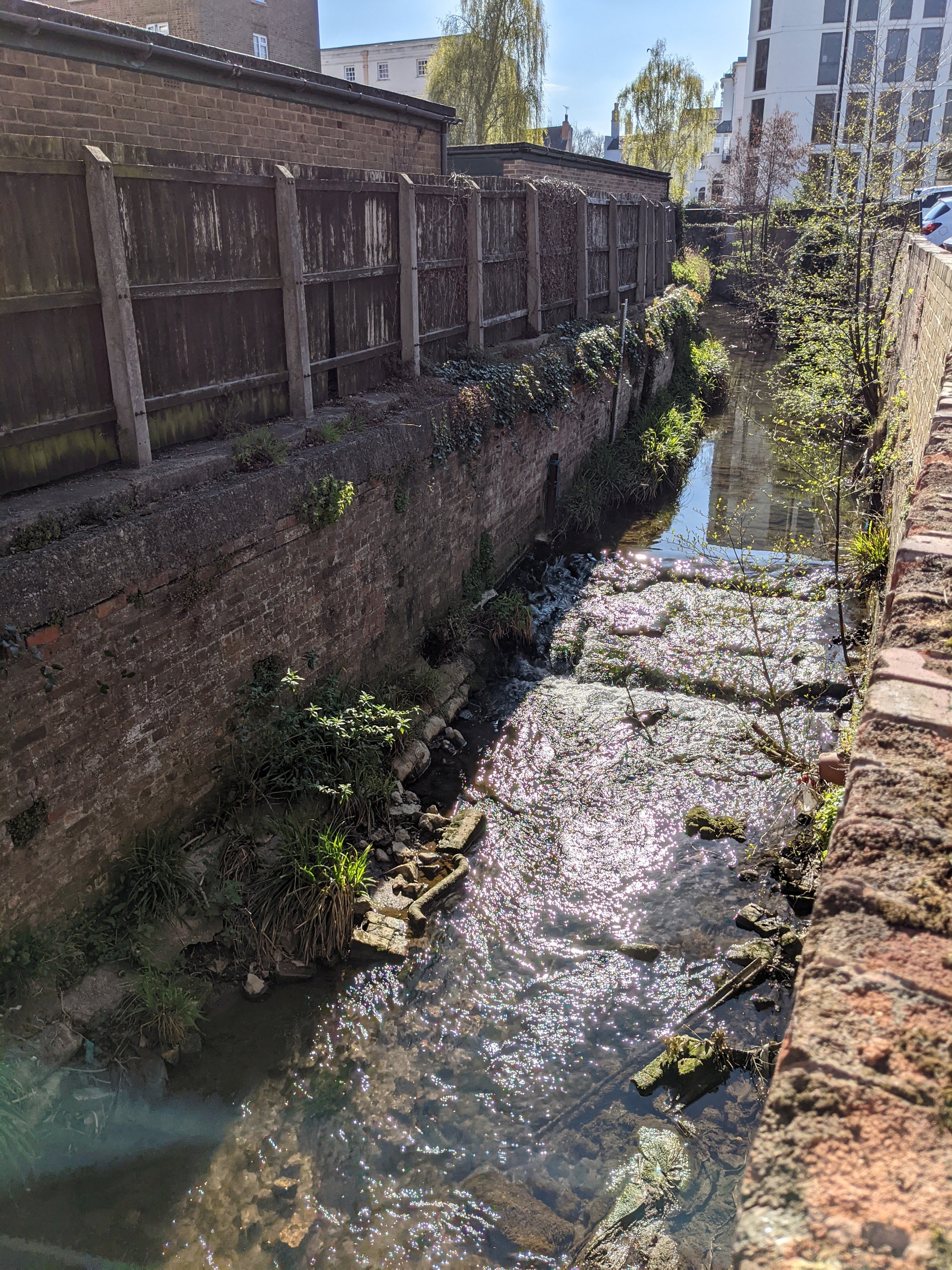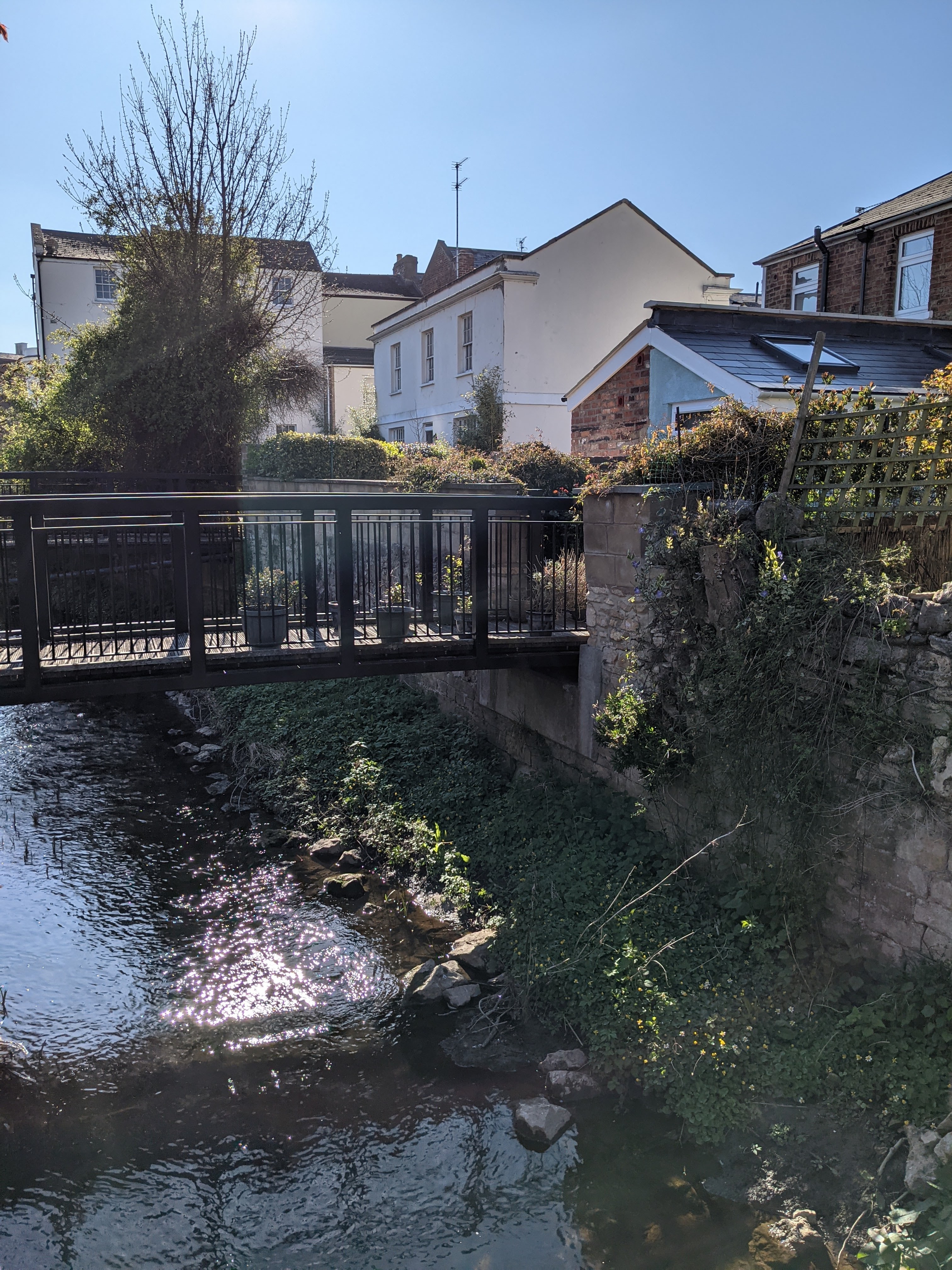 From the moat house follow the bridleway next to the ugly concrete thing, into the field to rejoin the river. Cross the bridge and turn left following the river. Over the stile, head for the opposite diagonal corner of the field where you can climb a second stile out onto the road. Turn left. There follows a boring bit of slightly industrial road walking where the river pops up a couple of times on your right. Turn right when you get to Hayden Road and walk along it. You may find it helpful at this point to switch to Google maps as the roads are much more easily identified than on OS. Take a moment as you pass Newland View on your right to pop down it and see the old mill stone and original mill cottages which were protected by local people when the new estate was built. Turn right at the junction with Village Road (just up on your left you’ll see a thatched house which used to be the blacksmiths. You’re now in the heart of what was Arle village- a thriving farming community and market gardens, when Cheltenham itself was just a tiny one road town.) Part way up Village Road, turn left onto a footpath/ cut through to George Reddings Park. Turn immediately left and go down the left hand side of the houses. This brings you onto a pedestrian path which runs along the side of the river until you meet Princess Elizabeth Way, and then cross over and into Chelt Walk Park, just to the right of the petrol station. Follow the path until you get to a metal footbridge over the river. This is point 1 on the River Chelt audio trail which you can listen to as you follow the next section of the walk if you’d like. Don’t cross the river until you get to the next, wooden, bridge and then continue following the path along the river on the opposite side. It will take you over a third bridge and then up to the road, alongside the railway tracks. Cross the railway bridge and follow the road until you can turn left down Arle Avenue. Follow the road down to the bridge and cross the river again, continuing with the river on your right until you get to the large white Millennium Bridge overhead. Go up the steps to the bridge and then you can either cross the road and down the slope to your right, or follow the Honeybourne line down through the underpass and then left through a second underpass if you want to see a selection of street art commissioned by Cheltenham Paint Festival. Stay on the pedestrian path, past Waitrose on your left and a small park, through ‘Little Venice’, with The Bayshill on your left. Cross the road and follow Royal Well Place and then St George’s Road, past the Neptune Fountain and along Imperial Square in front of Cheltenham Town Hall. Turn left and go up Rodney Road where the river appears, running alongside the carpark. Cut through Cambray Place, along Bath Street and then right down Bath Road until you get to the beautiful green ironwork gates and entrance to Sandford Parks. Once in the park bear left and you’ll find the river, Barratt’s Mill and another huge millstone. Continue through both sections of Sandford Park keeping the river on your left and at the end of the park cross Keynsham Road to follow a footpath alongside the river. When you come out at Old Bath Road, cross over to your right across the end of Sandford Mill Road (The Mill is a big white house just up here, again with a millstone outside) and into Cox’s Meadow. You can follow the higher path along the left of the meadow, with the Chelt running alongside at the bottom of the hill. Towards the end of the meadows Lilley Brook joins the river and you follow the brook for a short time before crossing it via a footbridge on your left and into a new housing estate on the edge of Charlton Kings.