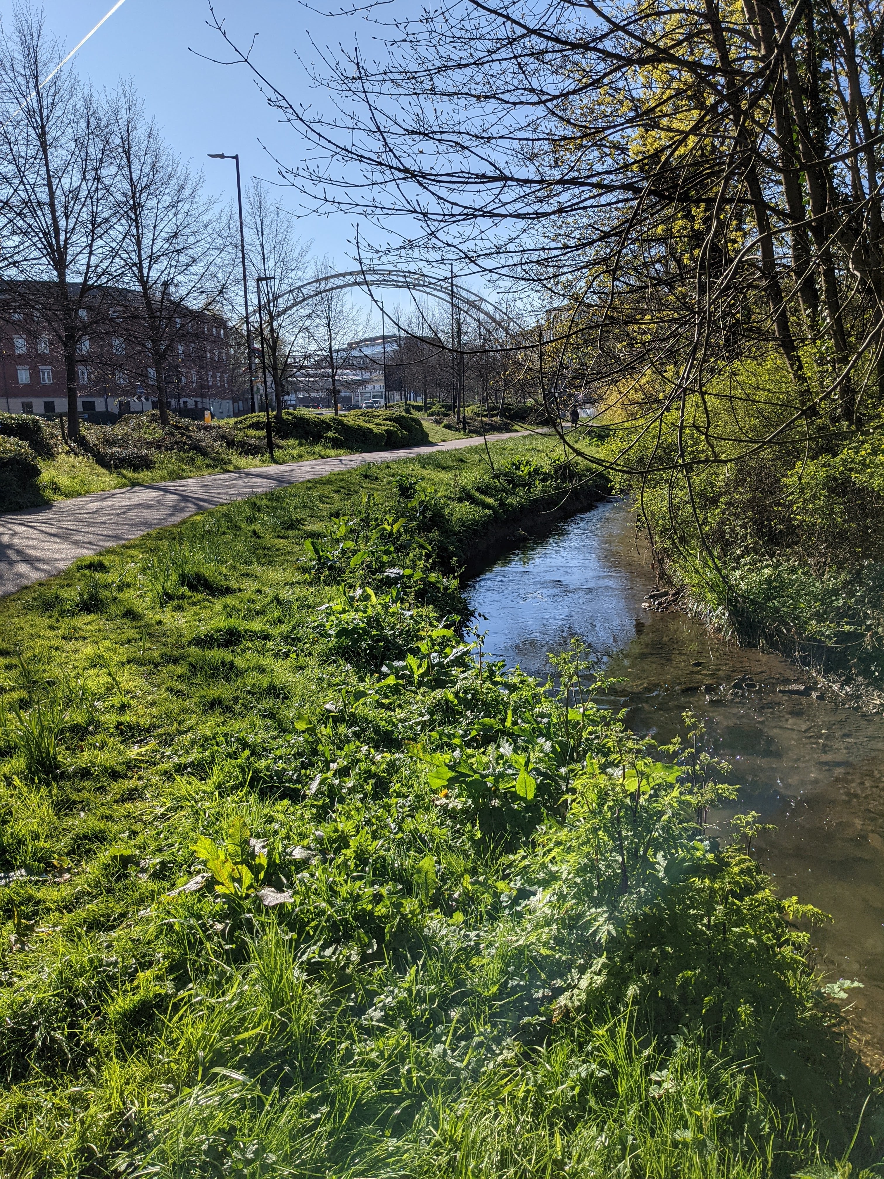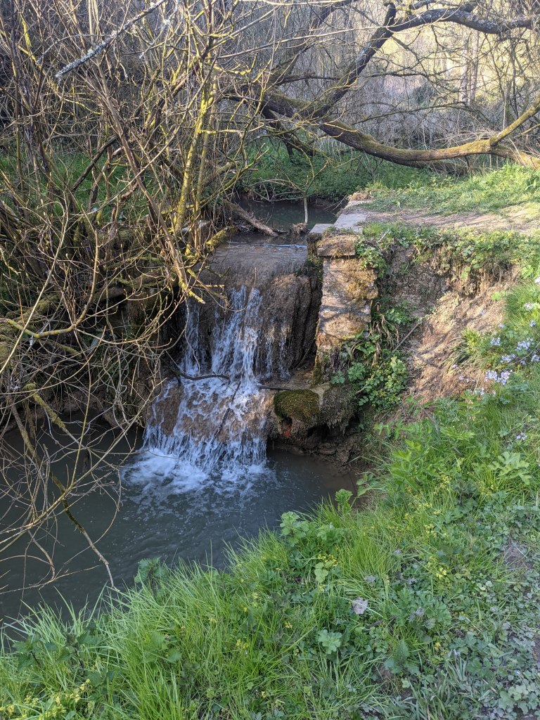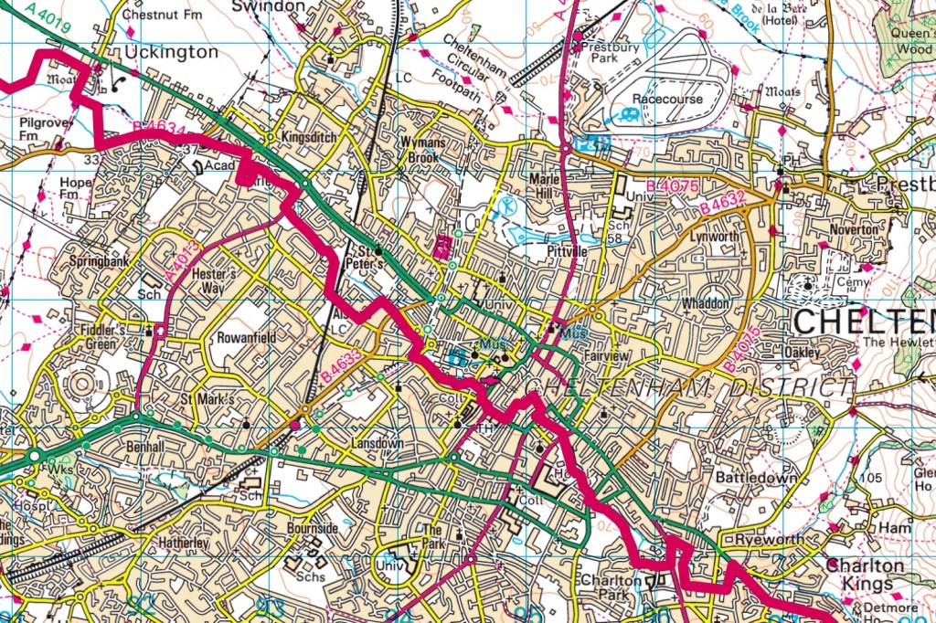 From the moat house follow the bridleway next to the ugly concrete thing, into the field to rejoin the river. Cross the bridge and turn left following the river. Over the stile, head for the opposite diagonal corner of the field where you can climb a second stile out onto the road. Turn left. There follows a boring bit of slightly industrial road walking where the river pops up a couple of times on your right. Turn right when you get to Hayden Road and walk along it. You may find it helpful at this point to switch to Google maps as the roads are much more easily identified than on OS. Take a moment as you pass Newland View on your right to pop down it and see the old mill stone and original mill cottages which were protected by local people when the new estate was built. Turn right at the junction with Village Road (just up on your left you’ll see a thatched house which used to be the blacksmiths. You’re now in the heart of what was Arle village- a thriving farming community and market gardens, when Cheltenham itself was just a tiny one road town.) Part way up Village Road, turn left onto a footpath/ cut through to George Reddings Park. Turn immediately left and go down the left hand side of the houses. This brings you onto a pedestrian path which runs along the side of the river until you meet Princess Elizabeth Way, and then cross over and into Chelt Walk Park, just to the right of the petrol station. Follow the path until you get to a metal footbridge over the river. This is point 1 on the River Chelt audio trail which you can listen to as you follow the next section of the walk if you’d like. Don’t cross the river until you get to the next, wooden, bridge and then continue following the path along the river on the opposite side. It will take you over a third bridge and then up to the road, alongside the railway tracks. Cross the railway bridge and follow the road until you can turn left down Arle Avenue. Follow the road down to the bridge and cross the river again, continuing with the river on your right until you get to the large white Millennium Bridge overhead. Go up the steps to the bridge and then you can either cross the road and down the slope to your right, or follow the Honeybourne line down through the underpass and then left through a second underpass if you want to see a selection of street art commissioned by Cheltenham Paint Festival. Stay on the pedestrian path, past Waitrose on your left and a small park, through ‘Little Venice’, with The Bayshill on your left. Cross the road and follow Royal Well Place and then St George’s Road, past the Neptune Fountain and along Imperial Square in front of Cheltenham Town Hall. Turn left and go up Rodney Road where the river appears, running alongside the carpark. Cut through Cambray Place, along Bath Street and then right down Bath Road until you get to the beautiful green ironwork gates and entrance to Sandford Parks. Once in the park bear left and you’ll find the river, Barratt’s Mill and another huge millstone. Continue through both sections of Sandford Park keeping the river on your left and at the end of the park cross Keynsham Road to follow a footpath alongside the river. When you come out at Old Bath Road, cross over to your right across the end of Sandford Mill Road (The Mill is a big white house just up here, again with a millstone outside) and into Cox’s Meadow. You can follow the higher path along the left of the meadow, with the Chelt running alongside at the bottom of the hill. Towards the end of the meadows Lilley Brook joins the river and you follow the brook for a short time before crossing it via a footbridge on your left and into a new housing estate on the edge of Charlton Kings.