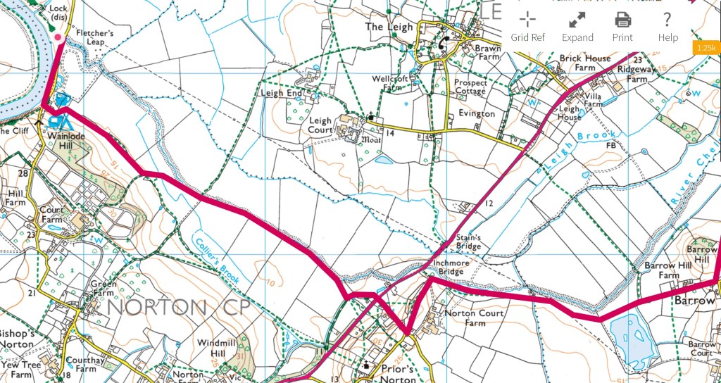 These route descriptions are based on starting at the confluence of the River Severn and the Chelt on Wainlode Lane, where the floodgates under the bridge try and hold back the water. When I attempted this route in winter the whole area was flooded and I had to make several significant diversions but by April 2021 the route as marked was all walkable.
