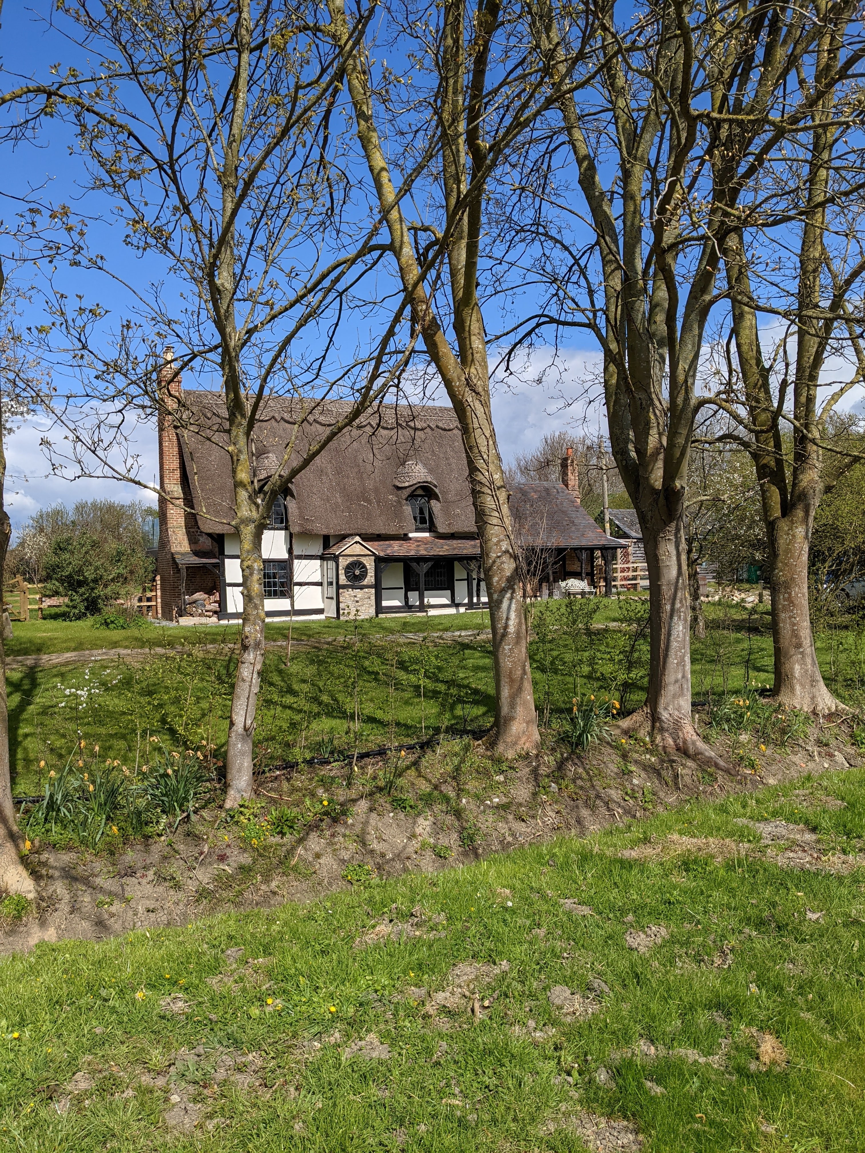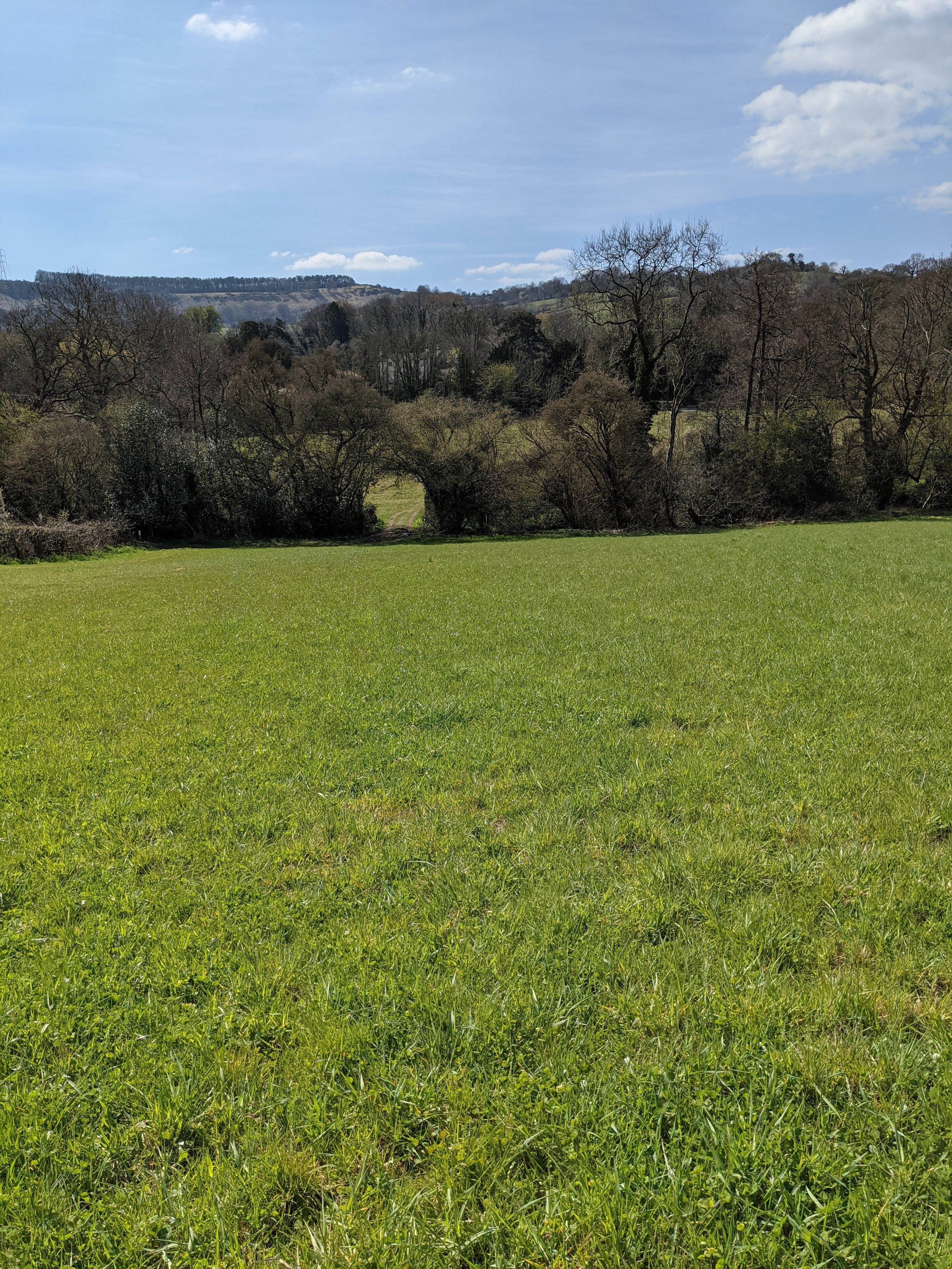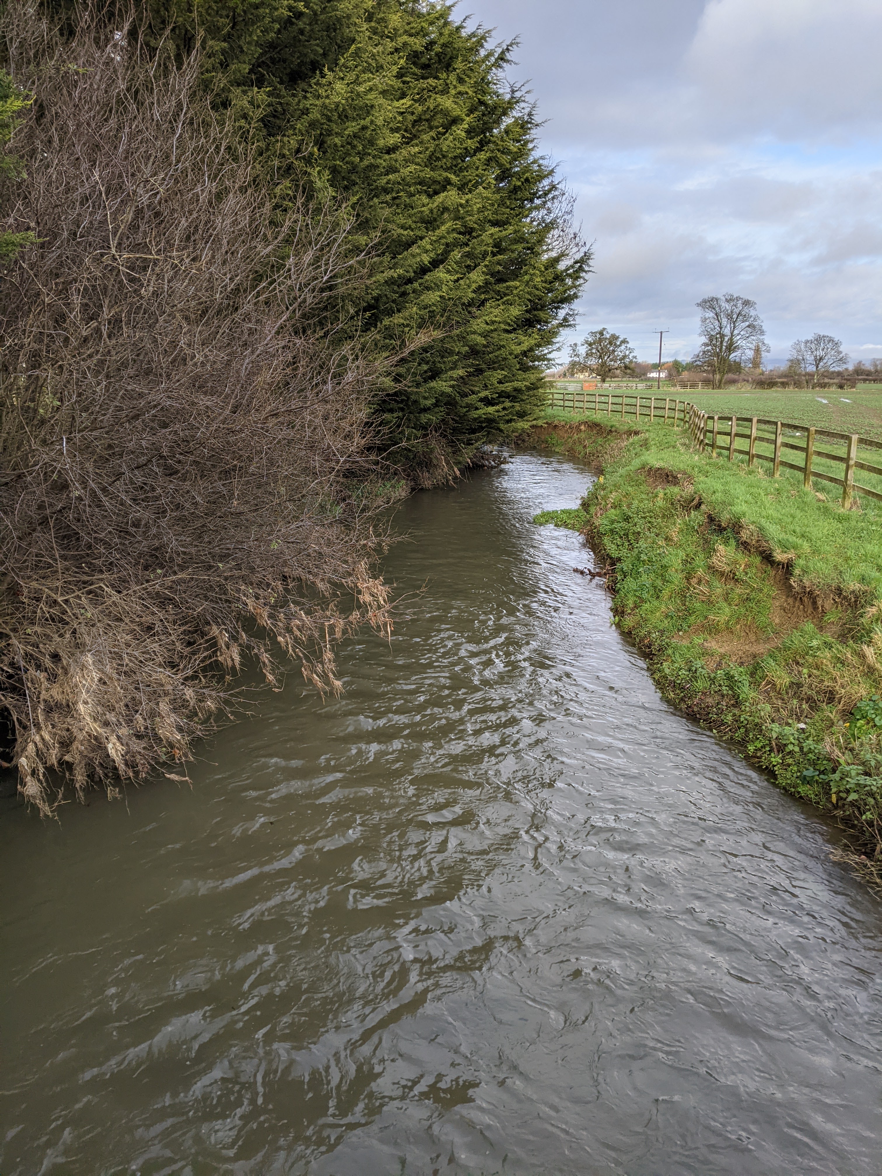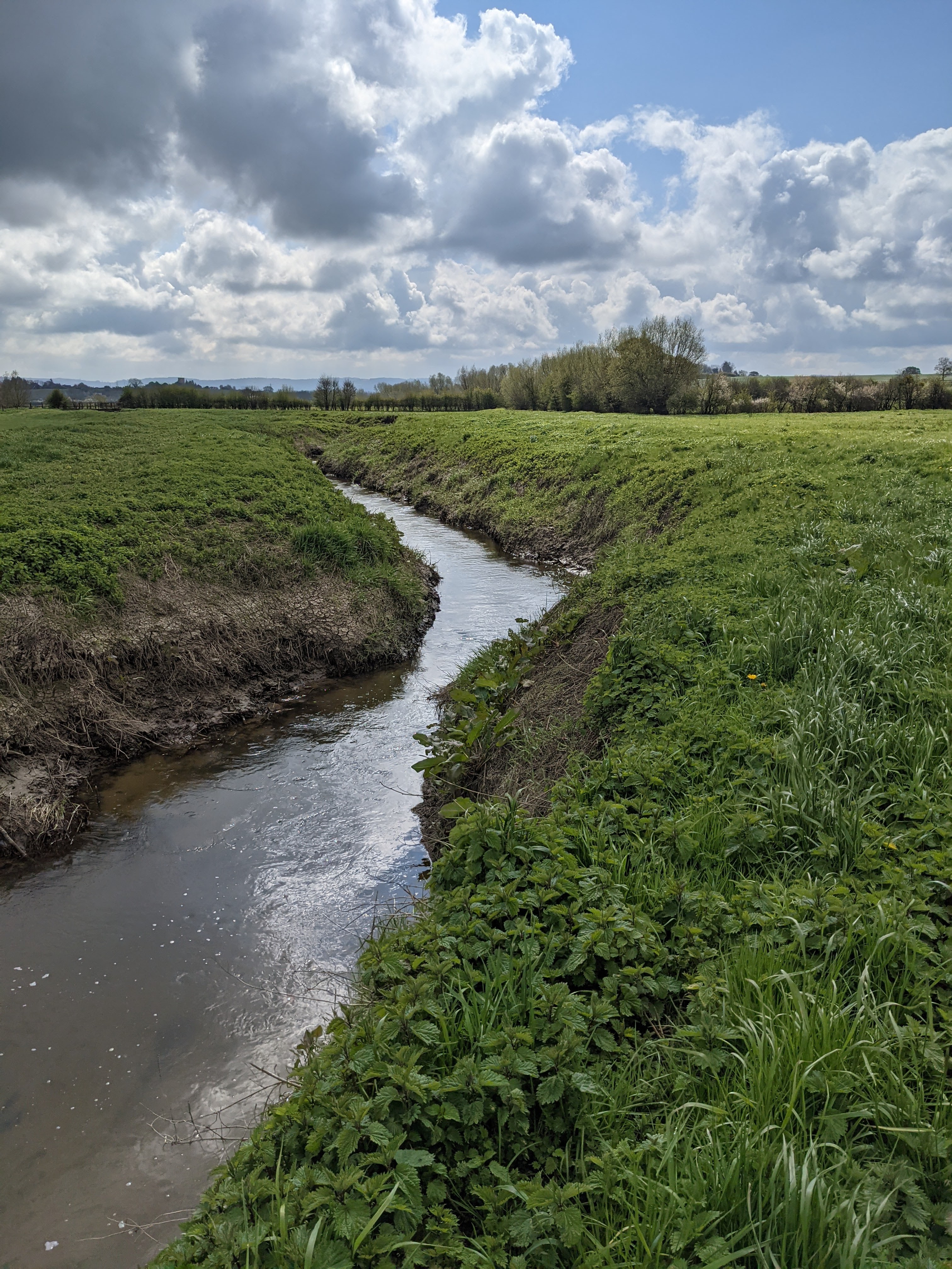 Just north of the Red Lion Pub at Wainlode Hill, the Chelt joins the River Severn (SO 84872618). Walk along the bank of the Severn with the River Severn on your right to the Red Lion Pub and walk down the left hand side of it, through their yard, into the caravan park. Go straight through the caravan park and where the track goes up to the right look to your left at the hedge in front and you’ll see a stile in the hedge. Climb over and follow the hedge line until a gravel track comes down to meet it and then take the footpath over the stile on your left. Cross the brook and carry on over the field a short way until you reach the River Chelt. Turn to your right and follow the river over several fields until it bends round to the left. There’s a ‘private’ sign beyond that point and a yellow arrow directs you to the gate in the hedge (with Norton Church up on the hill behind it). Turn left and follow the track to the road and cross straight over it. Walk up Marlpit Lane until you get to a junction and set back in the hedge on your left there’s a stile. Walk down the left hand edge of the field. At this point the official footpath tells you to cross the stile into the wooded area but the end of this wooded area is completely impassable. As it comes back out into the same field you’re already in anyway, I’d recommend avoiding the wood and just carrying on in the field until the metal footpath gate at the end of it. Once out on the track, walk down it to your left until the gate to get into the field. You’ll see the River Chelt in front of you. Turn to your right and follow the river along. Both times I have walked this there have been electric fences at different points to keep the horses in. I spoke to the owner of the farm who was really helpful and a walker herself who said it’s fine to crawl under in the meantime, and they’re getting it sorted. You pass a pond and cross a track and then the river bends round to the right. Follow it round and then keep walking along the edge of the field until you pass a lake on your right which they’re very keen to tell you is private. At the end of the field go through the gate and straight on up the road past a beautiful thatched house. (The house after this on the left has a mini railway track that goes round the whole garden). At the top of the road at the junction, climb the stile into the field on your left. (It has signs about bulls but there weren’t any animals in there.)