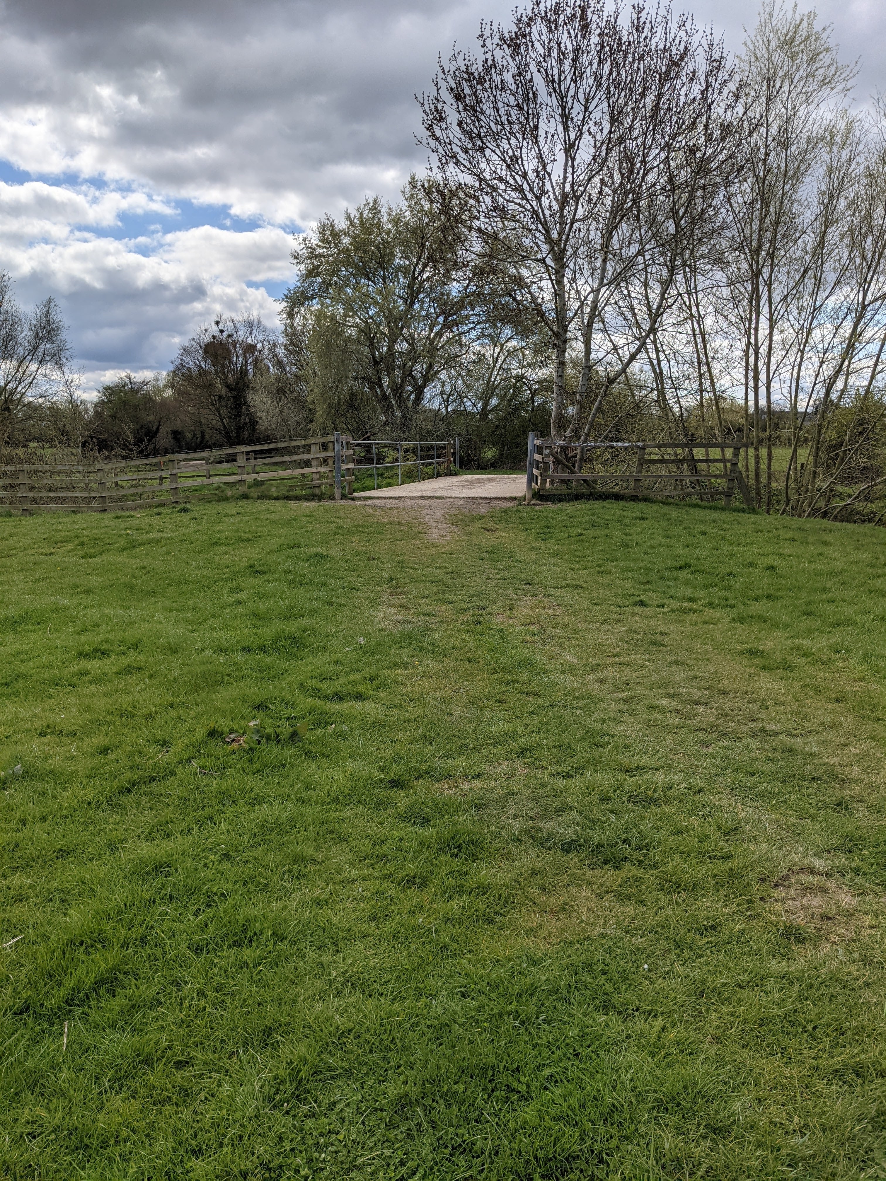When the Chelt starts to go off left across the field, you stick to the hedge, then past the lake